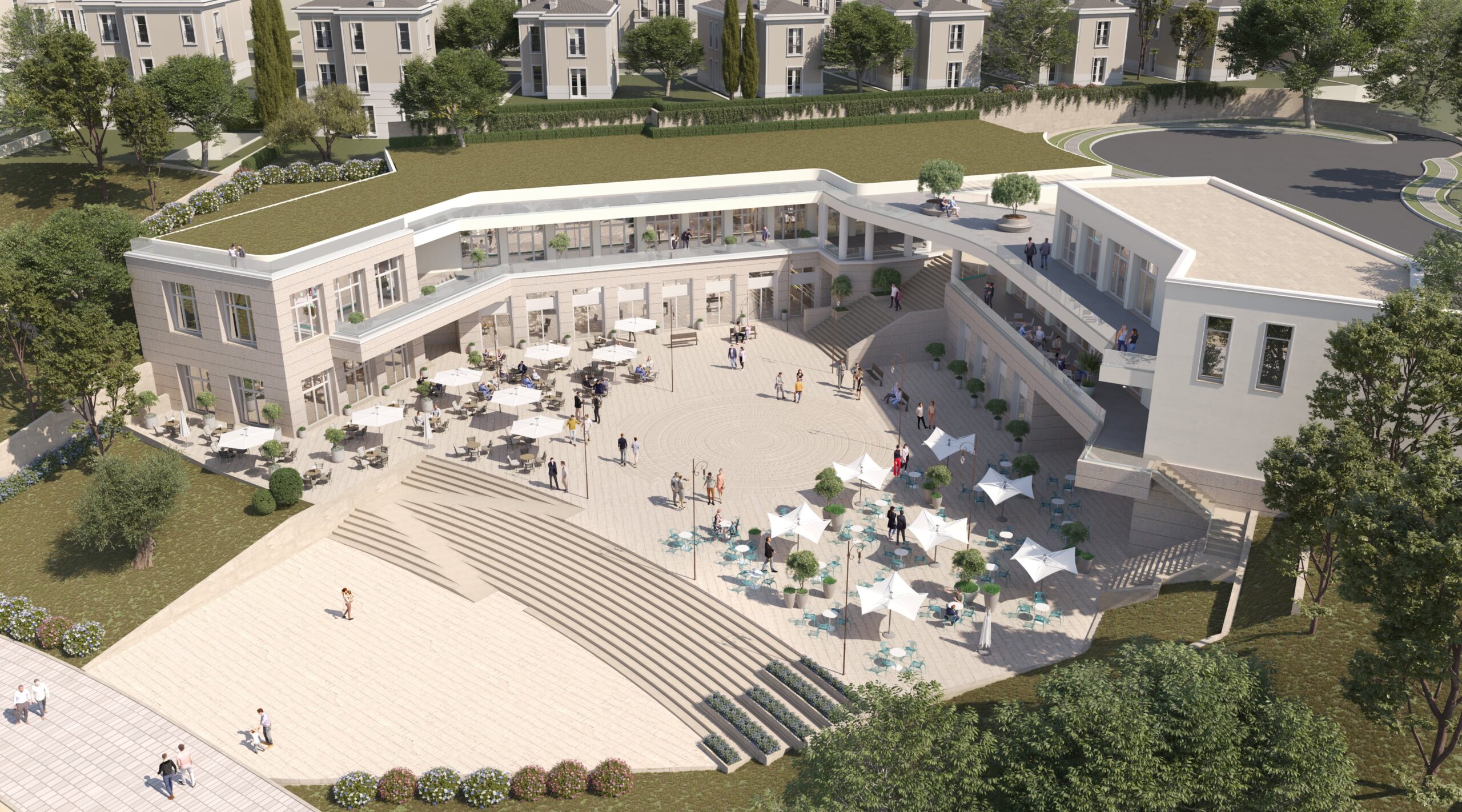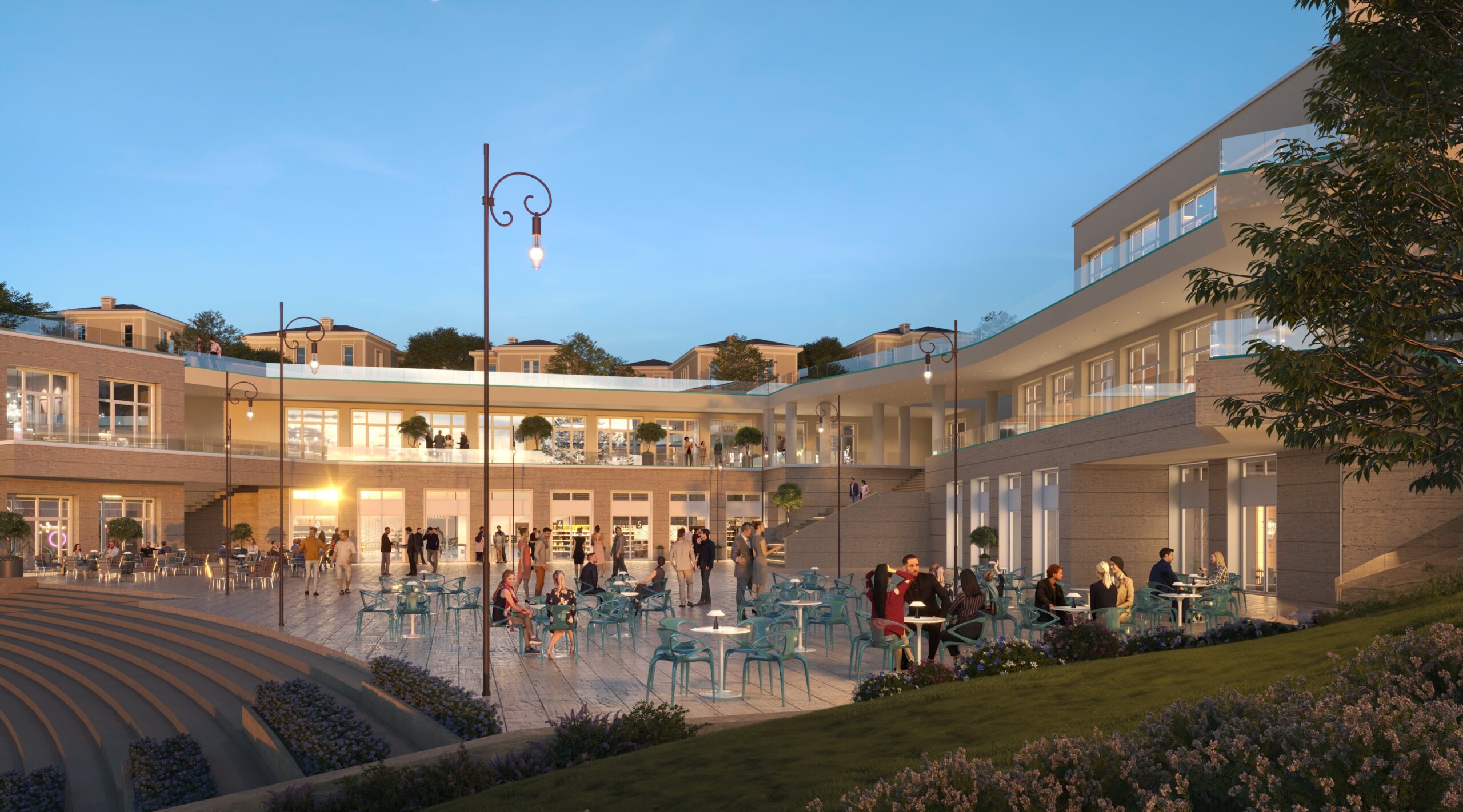 E pozicionuar strategjikisht në qendër të kompleksit dhe e aksesueshme nga banorët dhe vizitorët, Piazza pritet të kthehet në një pikë referimi për jetën sociale dhe ekonomike jo vetëm të kompleksit, por të të gjithë zonës së Farkës.